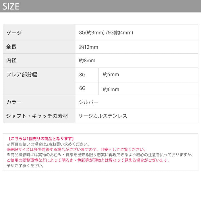 【全品送料無料】 ボディピアス 8G 6G ダブルフレア ダブルフレアアイレット 金属アレルギー 金アレ対応 サージカルステンレス シルバー ラージゲージ ラージホール ネジ式 シンプル ホール トンネル 耳 ボディーピアス ピアス アクセサリー かっこいい Pierce 片耳用