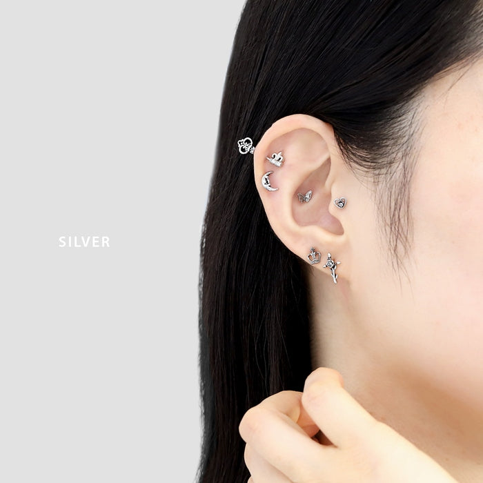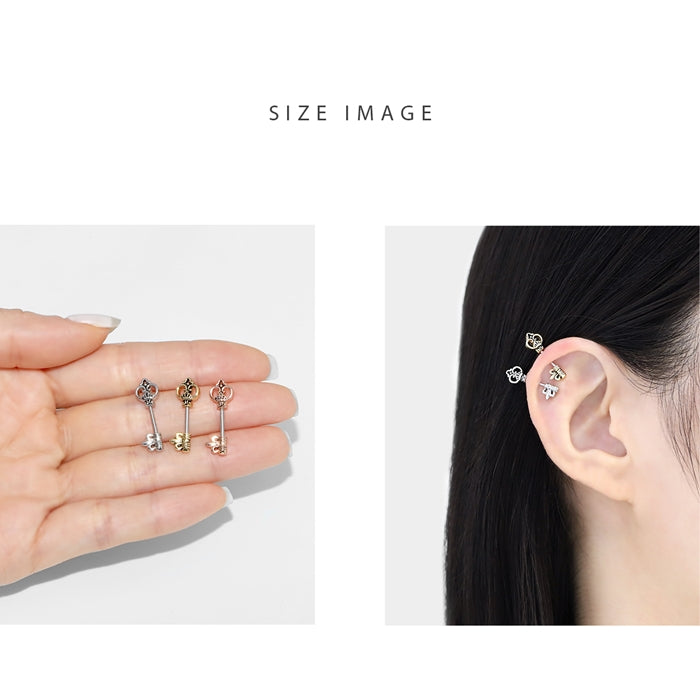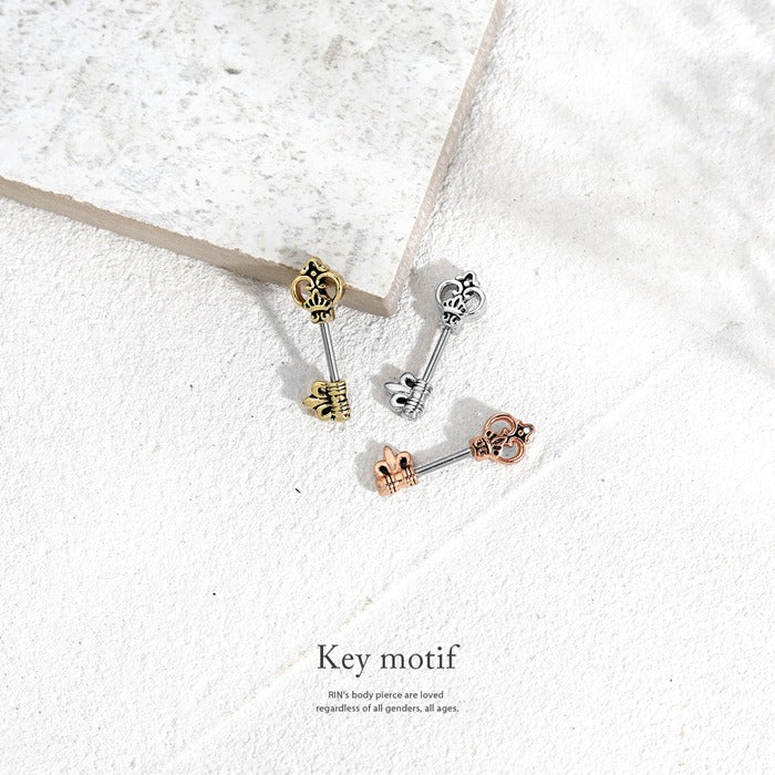 ★ h1132-308 軟骨ピアス 16G 14G 鍵 キーモチーフ アンティーク 紋章 アンテナへリックス おしゃれ ストレートバーベル 16ゲージ 14ゲージ ピアス サージカルステンレス 片耳用