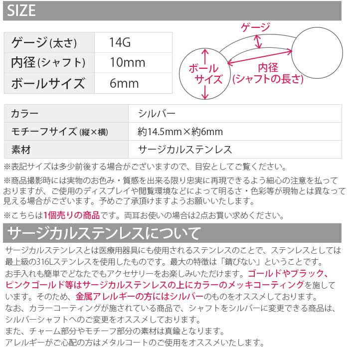 こちらのアイテムはサージカルステンレスとなっておりますが、 ゴールドやブラック、ピンクゴールド等はサージカルステンレスの上にカラーのメッキコーティングを施しています。