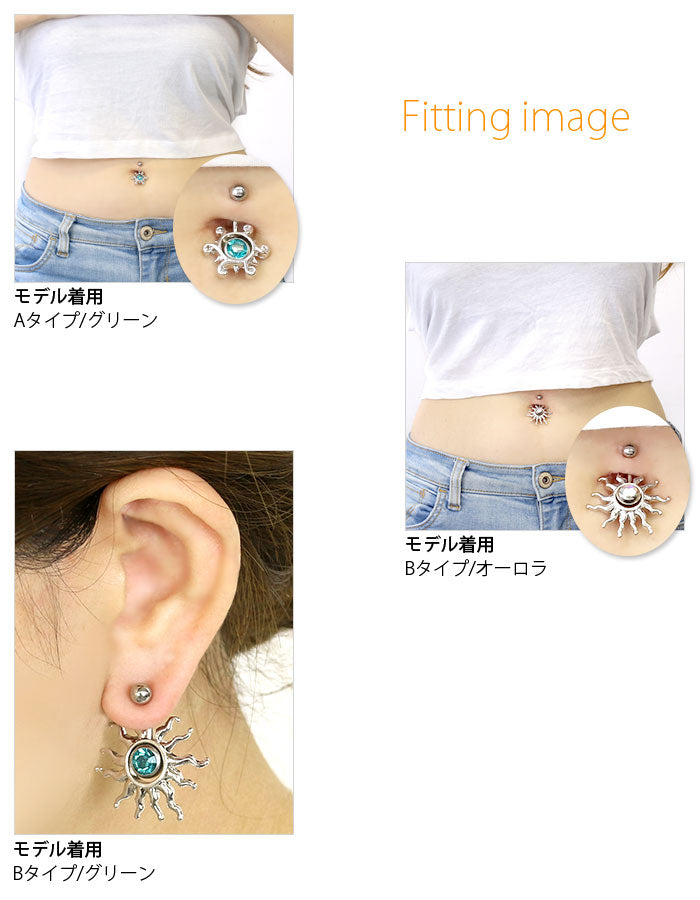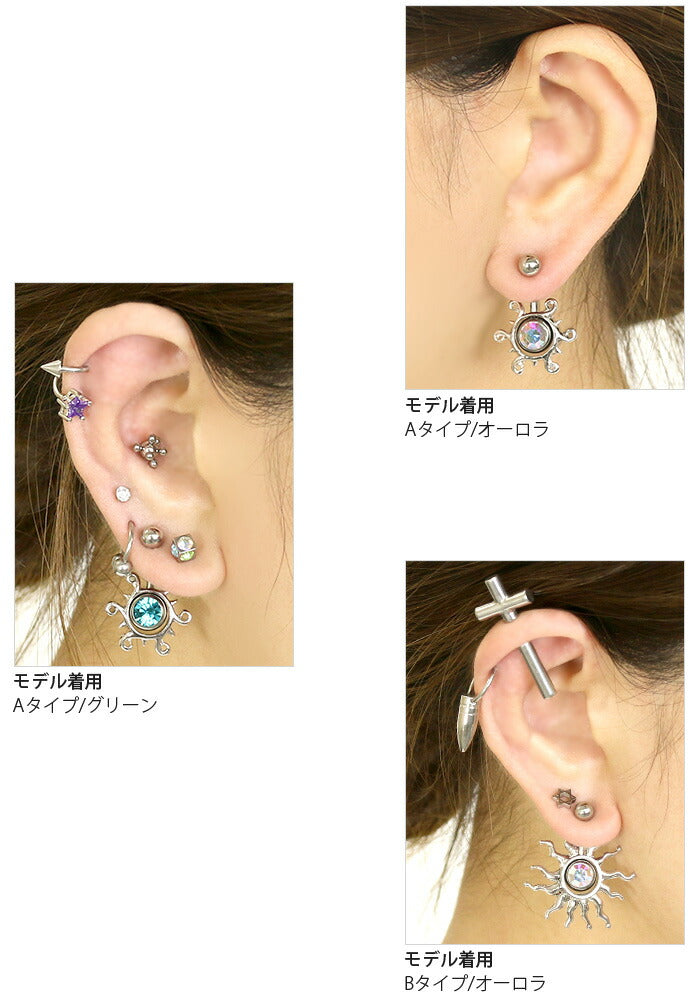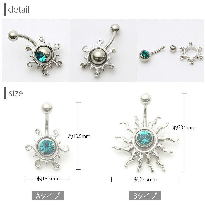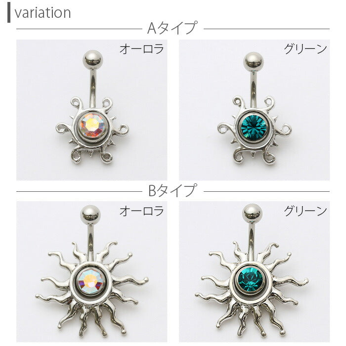 【金属アレルギー対応】 へそピアス かわいい 14G ボディピアス 太陽 ジュエル サージカルステンレス バナナバーベル サージカルステンレス 耳 へそピ ボディーピアス 軟骨ピアス 耳たぶ へそピ