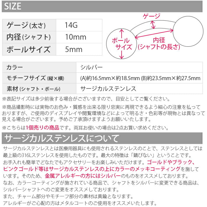 こちらのアイテムはサージカルステンレスとなっておりますが、 ゴールドやブラック、ピンクゴールド等はサージカルステンレスの上にカラーのメッキコーティングを施しています。