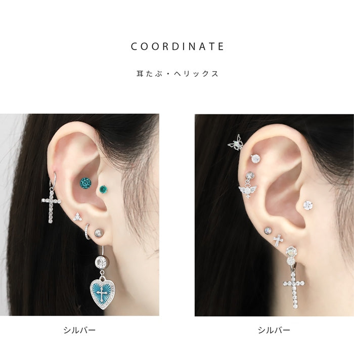 h71-0015 チャーム ボディピアス 軟骨ピアス 14G 16G 18G クロス 十字架 金属アレルギー 低アレルギー モチーフ レディース プレゼント 女性 大人 仕事 オフィス きれい かわいい おしゃれ シンプル 大きめ シルバー 普段使い カスタム カスタマイズ