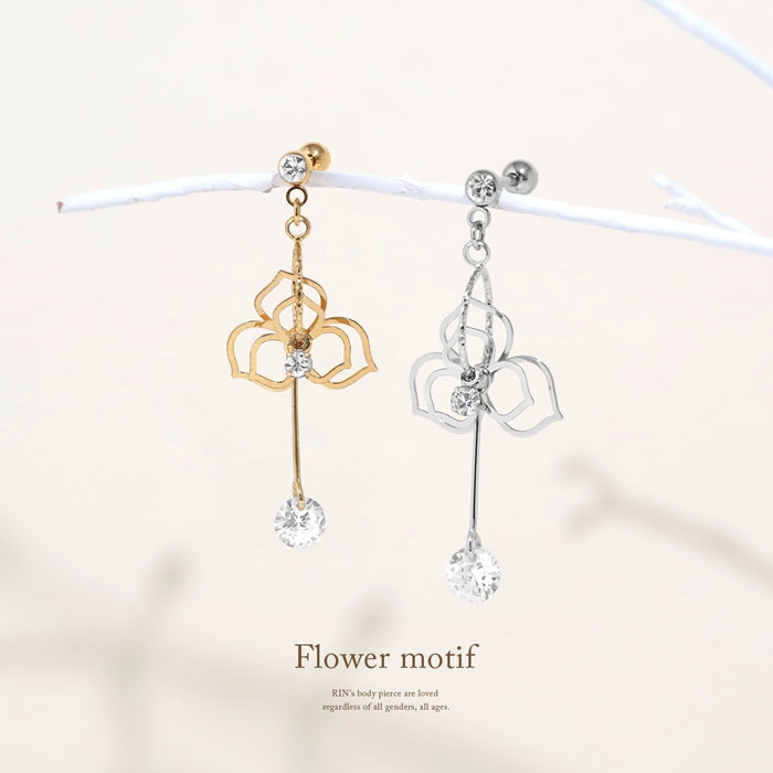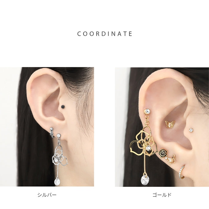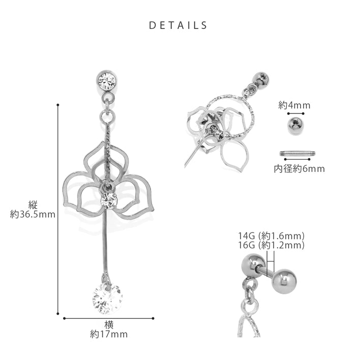 h71-008【全品送料無料】 軟骨ピアス 14G 16G ボディピアス かわいい キャッチ チャーム サージカルステンレス 金属アレルギー対応 花 フラワー かわいい バラ カメリア フェミニン ジュエル ストレートバーベル ファーストピアス セカンドピアス メンズ 軟骨 ピアス ボディーピアス