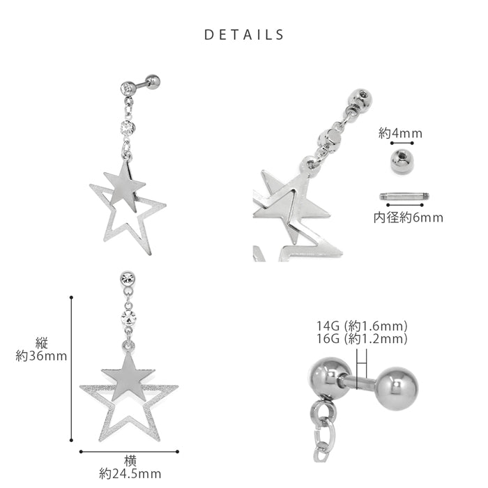h71-009【全品送料無料】 ボディピアス 軟骨ピアス 14G 16G かわいい 星 スター チャーム ボディーピアス ボディピ シルバー ゴールド ピアス ステンレス 凛 りん 金属アレルギー 専門店 ボディピアス専門店 「BP」「NAN」