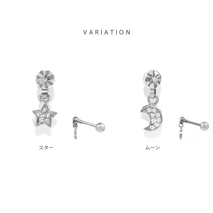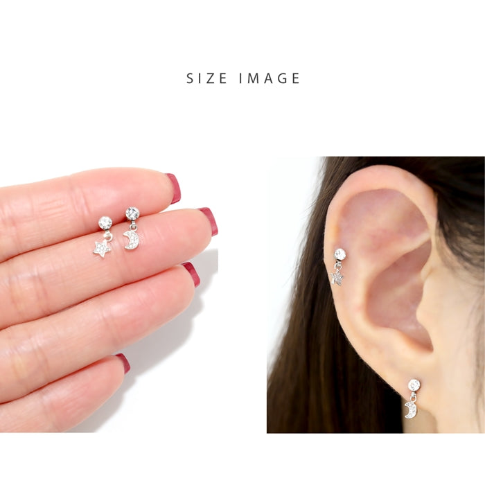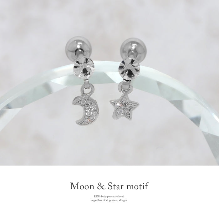16G スター&ムーンピアス 星 月 ジュエル ストレートバーベル 片耳用 軟骨チャーム付0128 h752-44