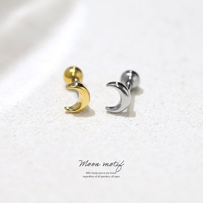 ★h752-51 ボディピアス 16G 軟骨ピアス つけっぱなし サージカルステンレス 金属アレルギー対応 レディース スタイリッシュ 月 ぷっくり ストレートバーベル ムーン シンプルめ 小さめ シルバー ゴールド かわいい デイリー オフィス キュート ギフト 片耳用