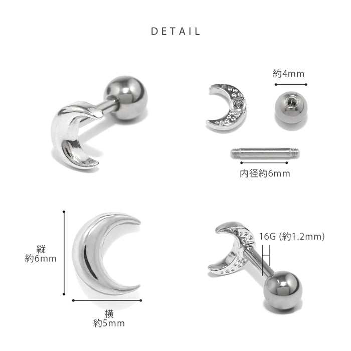 16G 月 ムーン ストレートバーベル ボディピアス 片耳用 軟骨1075 h752-51