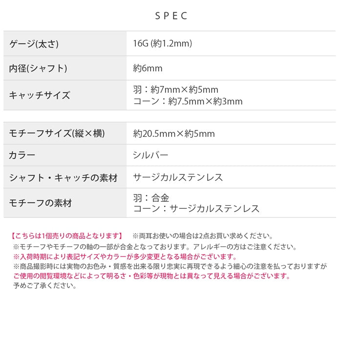 | モチーフの素材 | 羽:合金 コーン:サージカルステンレス |
