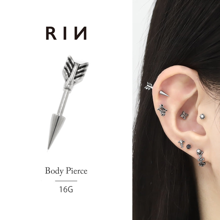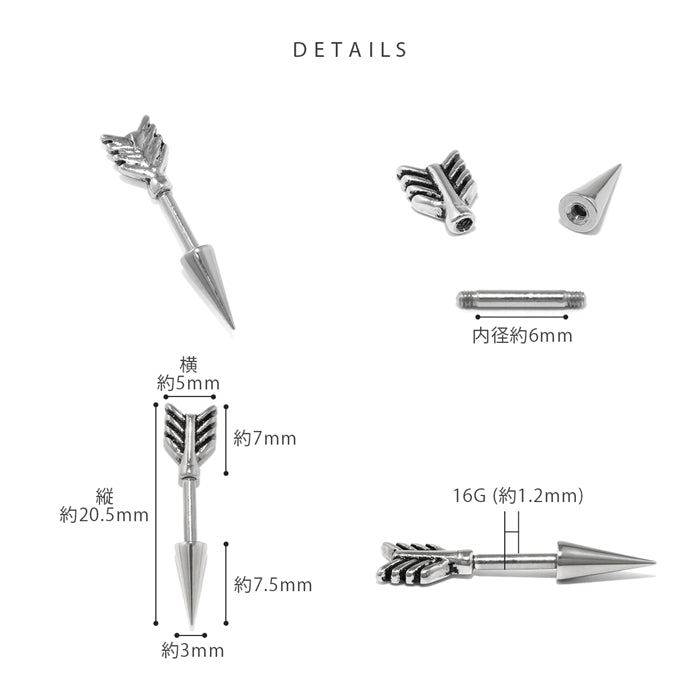 h752-56【全品送料無料】 軟骨ピアス メンズ 16G ボディピアス ピアス アロー コーン 16ゲージ ストレートバーベル サージカルステンレス 耳 軟骨 ピアス