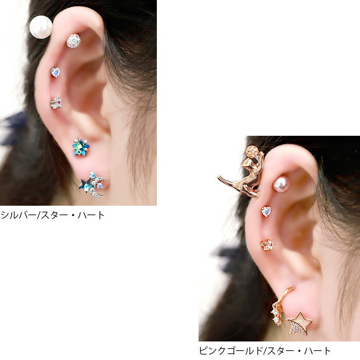 軟骨1207/ボディピアス 16G 軟骨ピアス ハート 星 オーロラ ジュエル スター/h752-58