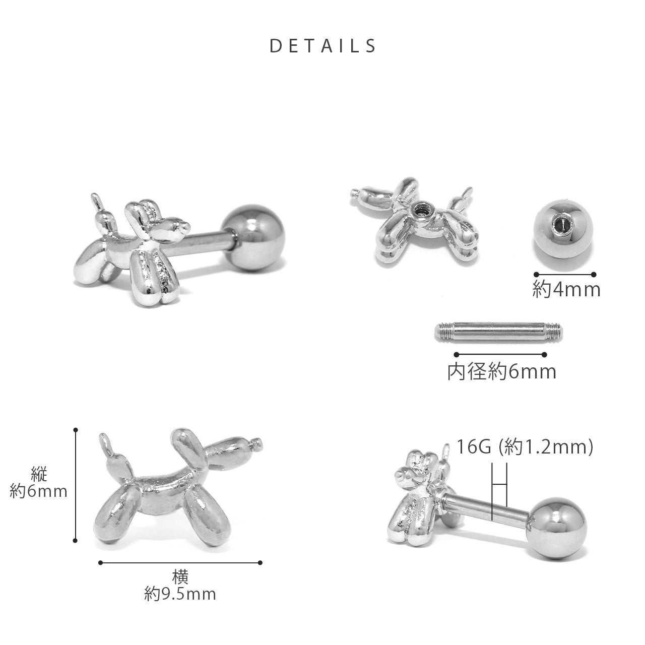 h752-59 軟骨ピアス 16G ボディピアス バルーンドッグ かわいい 犬 風船 動物 金属アレルギー ストレートバーベル ピアス サージカルステンレス 片耳用