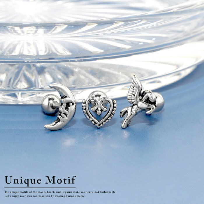 【全品送料無料】 ボディピアス 16G 軟骨ピアス サージカルステンレス 金属アレルギー対応 ペガサス ハート ムーン 三日月 動物 アニマル おしゃれ スタイリッシュ かわいい かっこいい メンズ 耳たぶ 片耳用