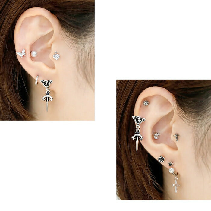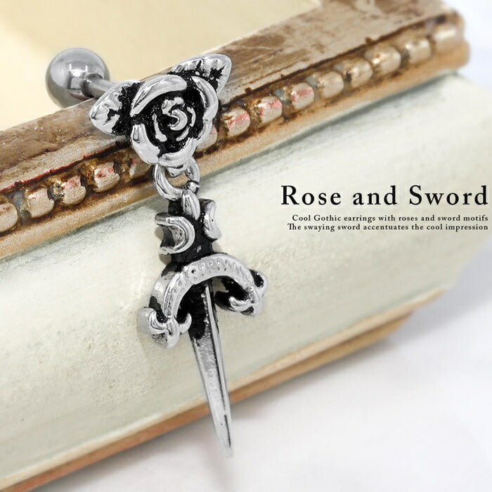 16G 軟骨ピアス ローズ 薔薇 剣 ソード ストレートバーベル 軟骨1282 h752-61