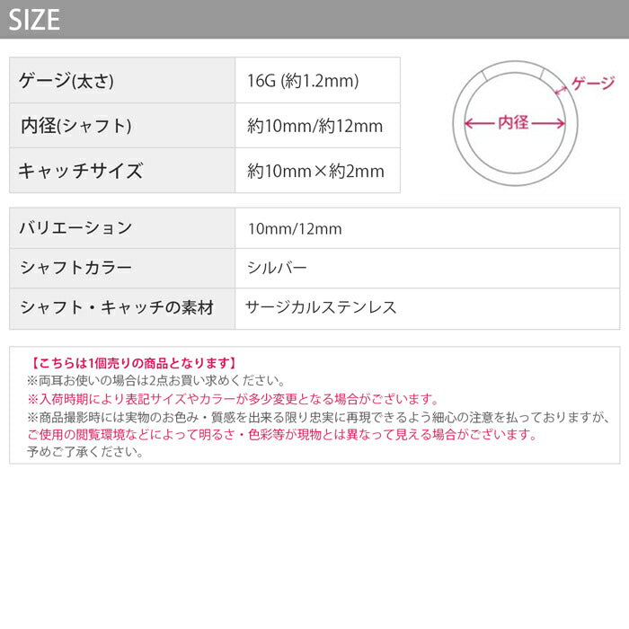16G シンプル リングピアス フープピアス ステンレスピアス0093 h752-63