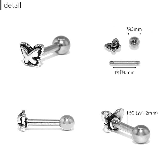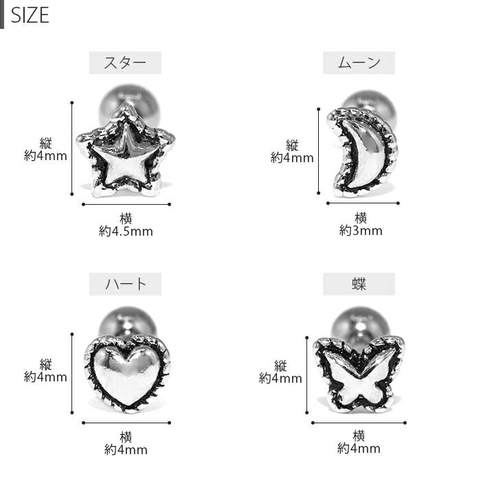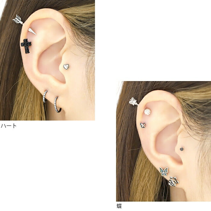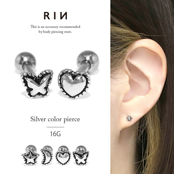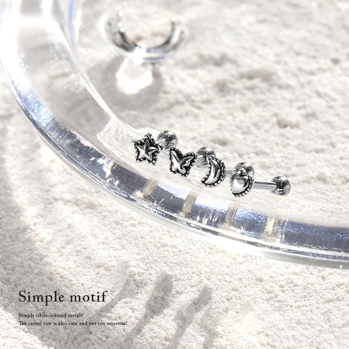 h752-67 ボディピアス 16G 軟骨ピアス サージカルステンレス 金属アレルギー対応 ハート ムーン 三日月 スター 星 バタフライ シルバー おしゃれ スタイリッシュ かわいい かっこいい レディース メンズ 耳たぶ 片耳用 ストレートバーベル ピアス Pierce
