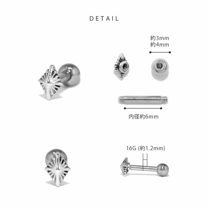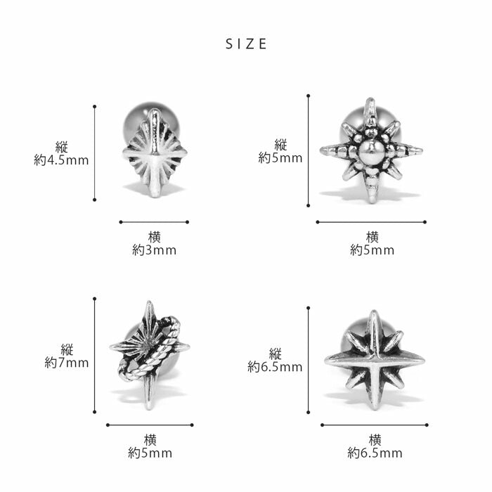 16G スタースタッドピアス スパーク メタル ゴシック ボディピアス 軟骨1423 h752-71