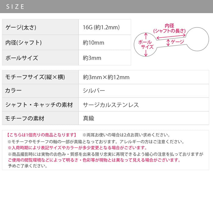 h752-72 ボディピアス 軟骨ピアス 16G 金属アレルギー対応 金属アレルギー サージカルステンレス つけっぱなし ストレートバーベル バラ シールド レディース 女性 大人 仕事 オフィス きれい かわいい おしゃれ シンプル 小さめ シルバー 普段使い