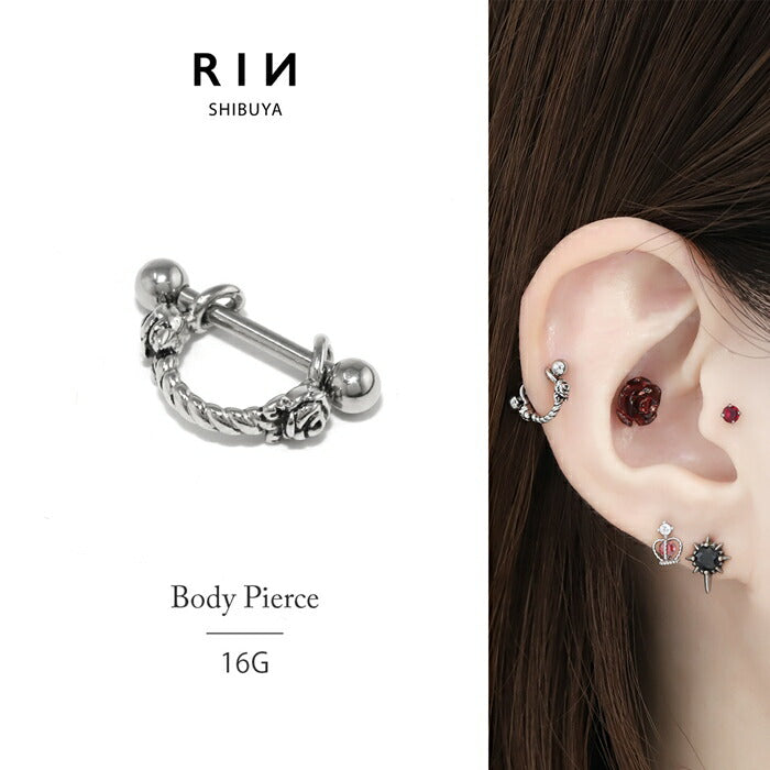 軟骨ピアス 16G バラ シールドピアス ストレートバーベル 軟骨1429 h752-72