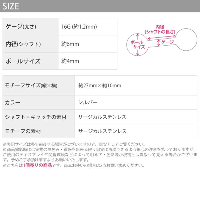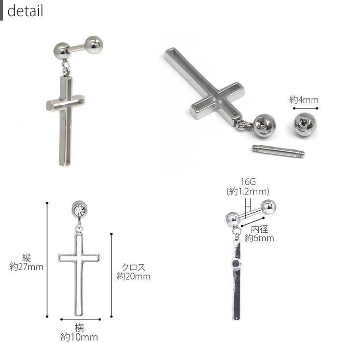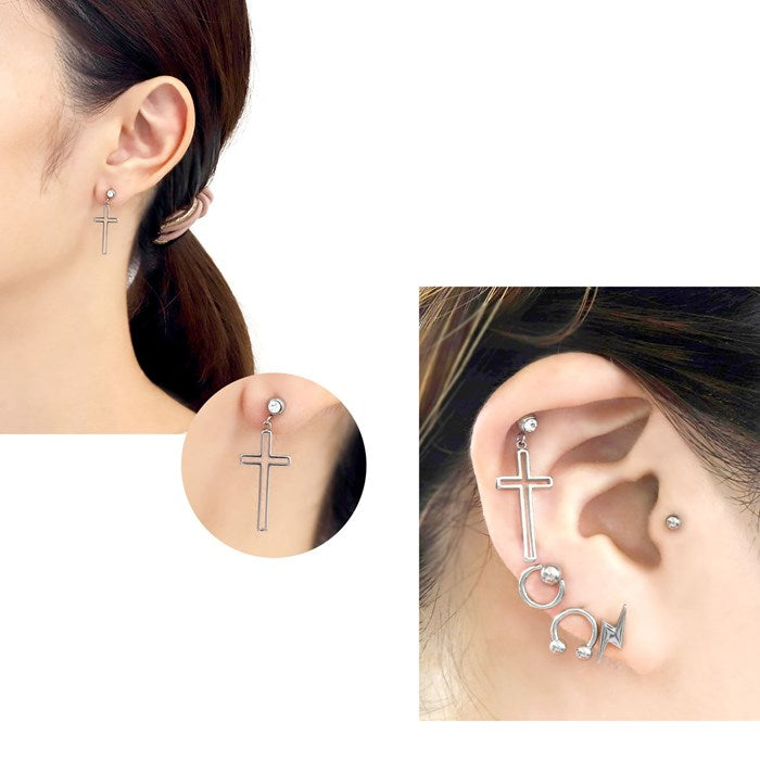 【楽天SOY5年連続受賞】ボディピアス 軟骨ピアス 十字架 クロス チャーム 16G シルバー サージカルステンレス 金属アレルギー対応 つけっぱなし レディース メンズ 片耳用