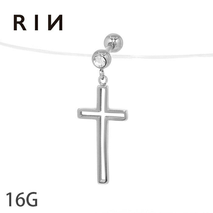 16G クロス ジュエル ストレートバーベル 軟骨チャーム付0206 j1181-137
