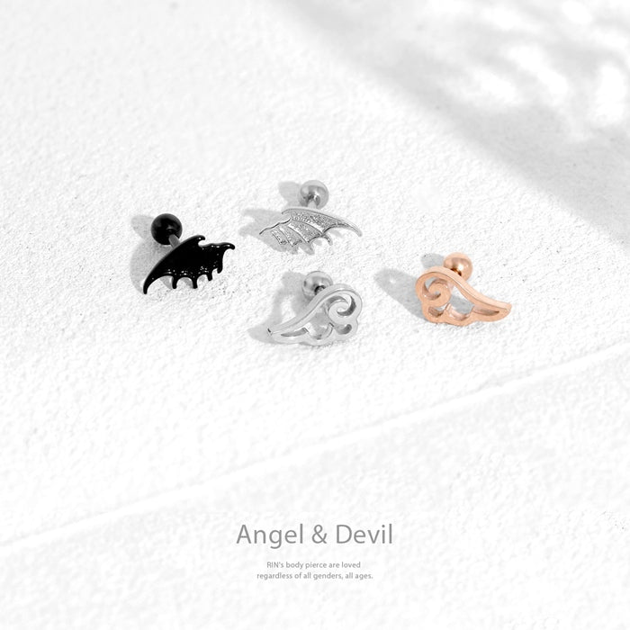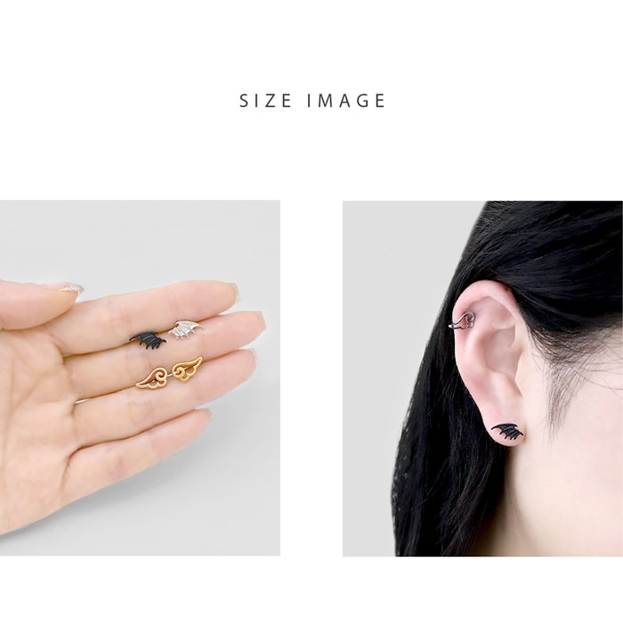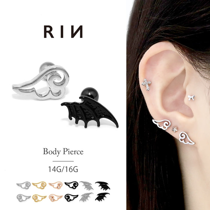 ★j1181-144【全品送料無料】 軟骨ピアス ボディピアス 16G 14G かわいい 天使 悪魔 翼 羽 ストレートバーベル サージカルステンレス 金属アレルギー対応 軟骨用 ヘリックス シルバー ブラック シンプル ファーストピアス セカンドピアス ボディピ