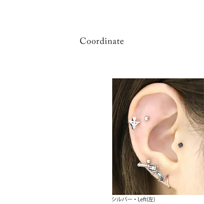 j1181-147 ボディピアス 16g 軟骨ピアス ピアス 金属アレルギー 金属アレルギー対応 つけっぱなし サージカルステンレス 銃 拳銃 ピストル セカンドピアス ファーストピアス シルバー かわいい ヘリックス トラガス シンプル レディース メンズ 耳たぶ 片耳用