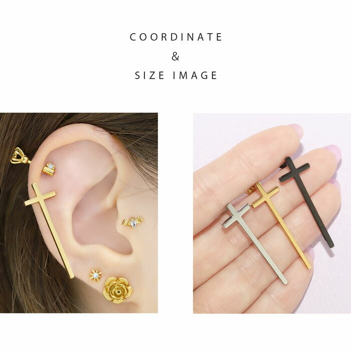 ボディピアス 16G 軟骨ピアス フラット ロング クロス 十字架 ハロウィン 軟骨0818 j1181-95