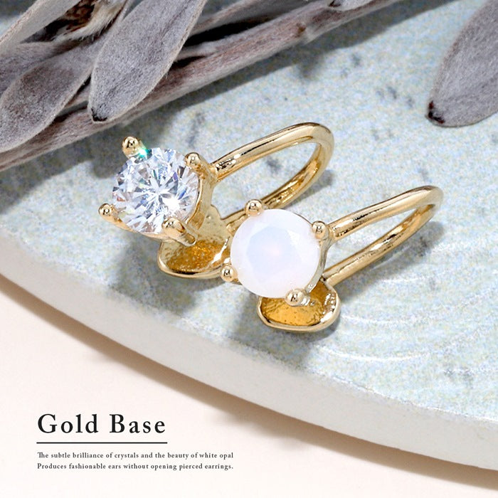 【全品送料無料】 イヤーカフ イヤーカフス トラカフ イヤカフ カフ ジュエル 真鍮 トラガス キュービックジルコニア シンセティックオパール パール シルバー クリア ホワイトオパール ゴールド ホワイト オパール イヤリング