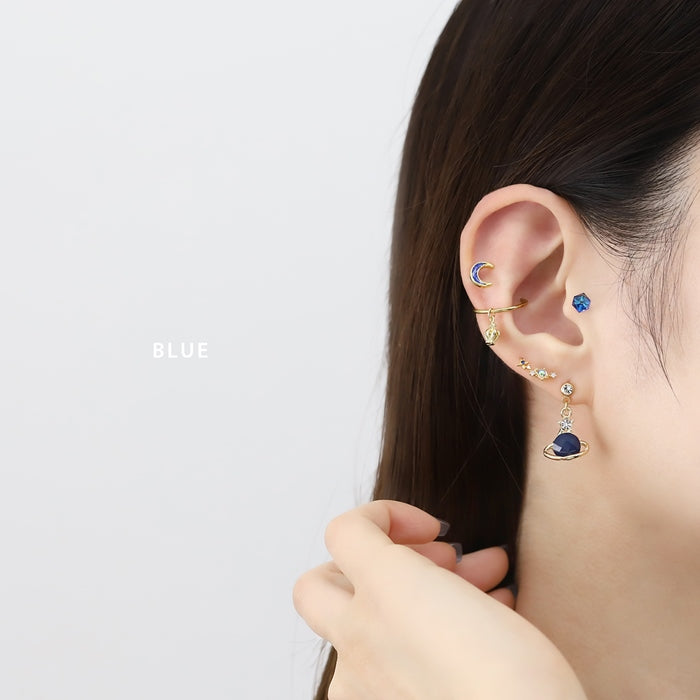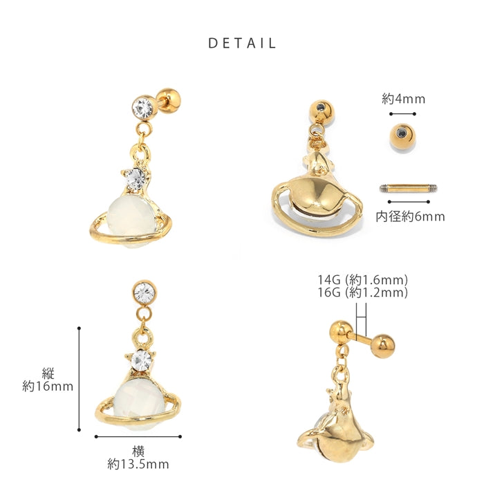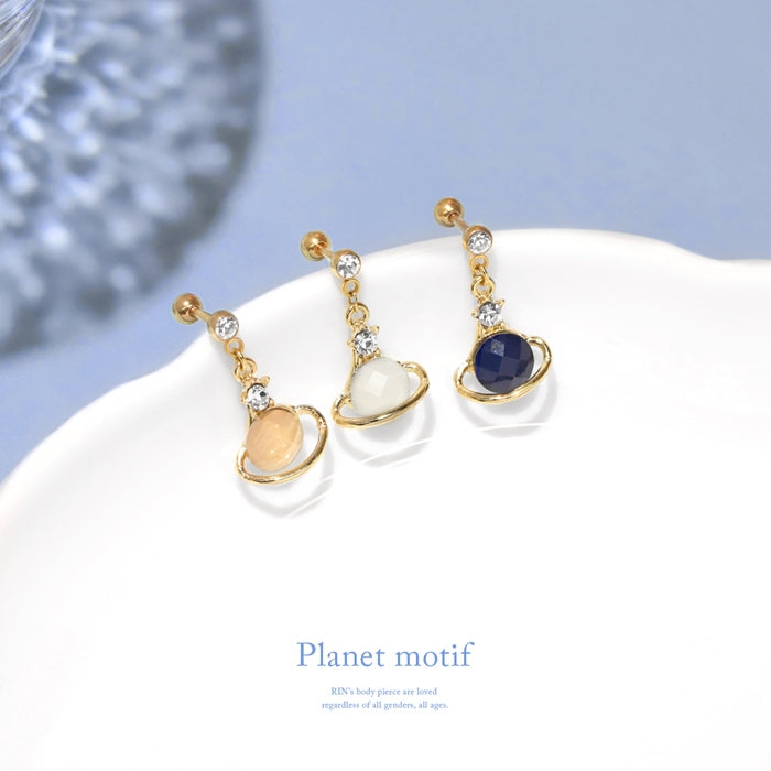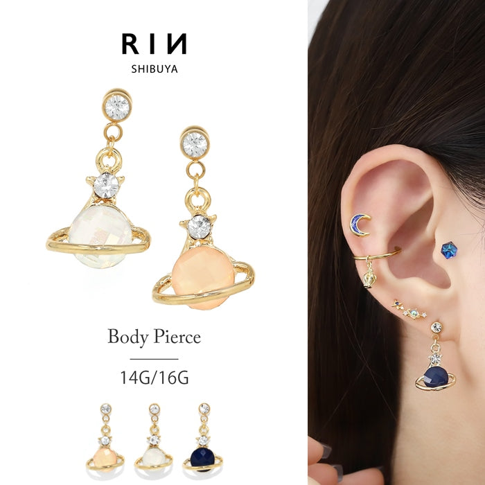 j272-0002 軟骨ピアス 14G 16G プラネットジュエルピアス 凛オリジナル ボディピアス 惑星 星 土星 宇宙 金属アレルギー対応 ストレートバーベル サージカルステンレス ゴールド 白 ホワイト ピンク 青 ブルー 揺れる 女子会 お出かけ プレゼント 片耳用