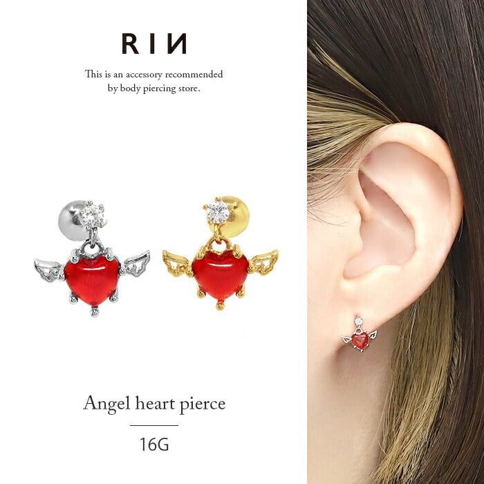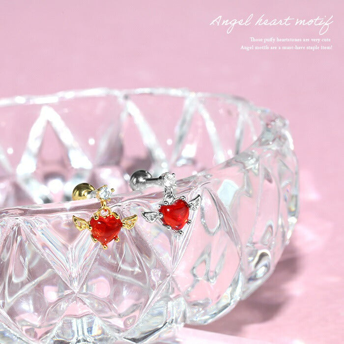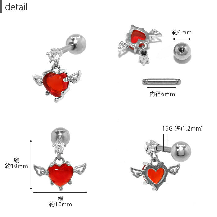 16G ハート エンジェル 羽 ピアス ストレートバーベル チャーム 軟骨チャーム付0218 j3413-29