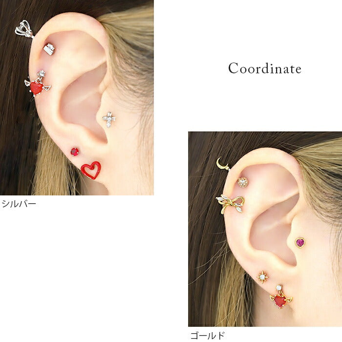 j3413-29 ボディピアス 軟骨ピアス 16G ハート エンジェル 羽 ピアス 金属アレルギー サージカルステンレス ストレートバーベル キャッチ チャーム レディース ステンレスピアス セカンドピアス つけっぱなしピアス シルバー ゴールド 揺れる シンプル 軟骨用 片耳用