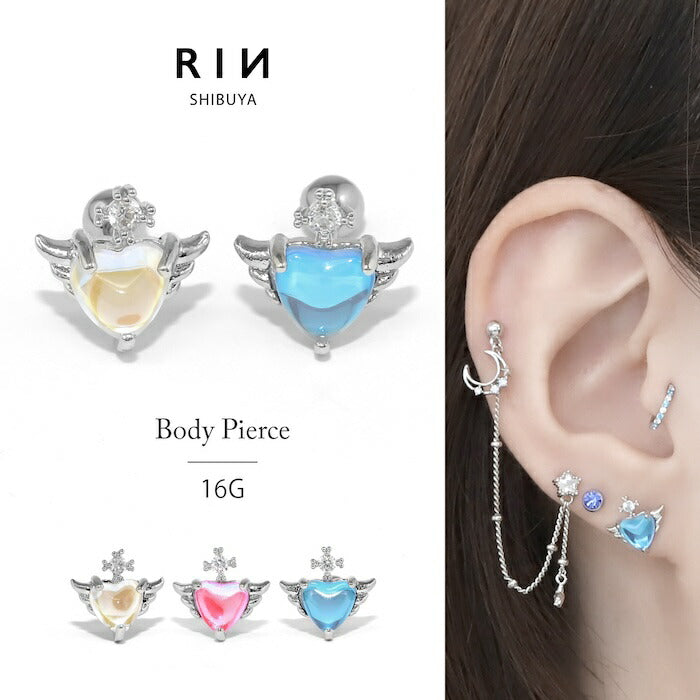 j3413-31 ボディピアス 16G 軟骨ピアス つけっぱなし ヘリックス ヘリックスピアス サージカルステンレス ステンレス 金属アレルギー 金属アレルギー対応 ハート 羽 翼 ピアス レディース メンズ ストレートバーベル ジュエル 片耳用
