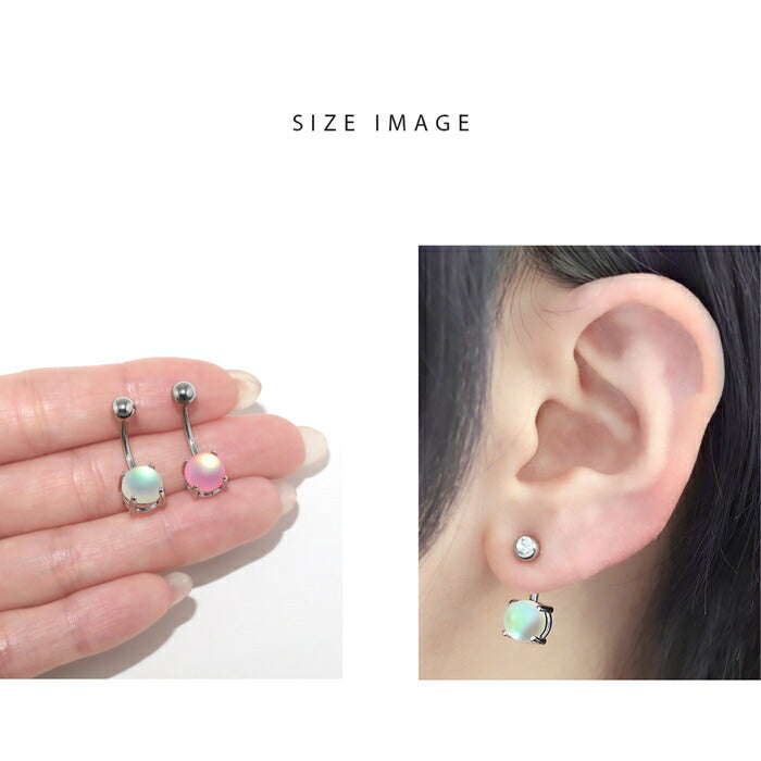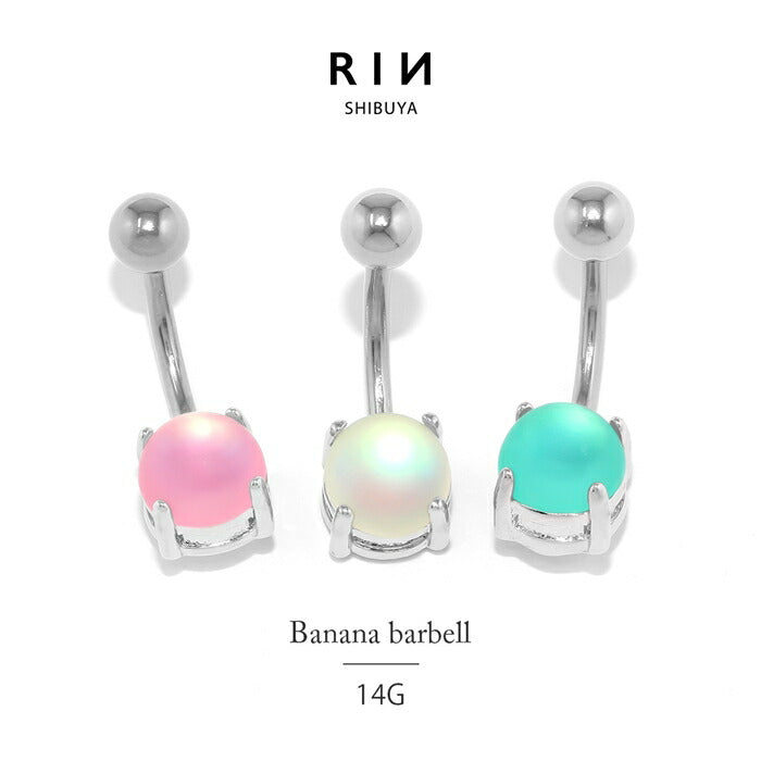 j3413-35 ボディピアス へそピアス 14G 金属アレルギー対応 金属アレルギー サージカルステンレス つけっぱなし カボション バナナバーベル ボールキャッチ レディース 女性 大人 仕事 きれい かわいい おしゃれ シンプル 小さめ オーロラ ピンク グリーン 普段使い