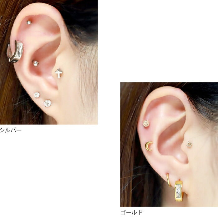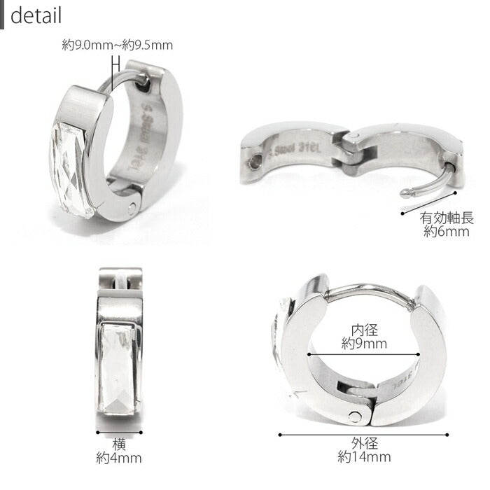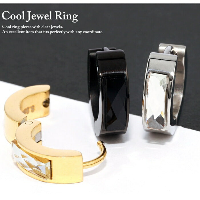 ステンレスピアス リングピアス フープピアス ジュエル スタイリッシュ クリア シルバー ブラック メンズ レディース サージカルステンレス 金属アレルギー対応 ワンタッチ ボディピアス 軟骨 耳たぶ 片耳用