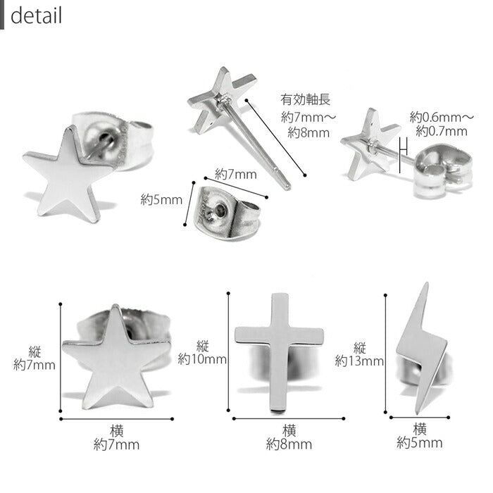 ★ステンレスピアス スタッドピアス シンプル 金属アレルギー対応 サージカルステンレス スター クロス イナズマ シルバー ブラック 耳 スタイリッシュ レディース メンズ