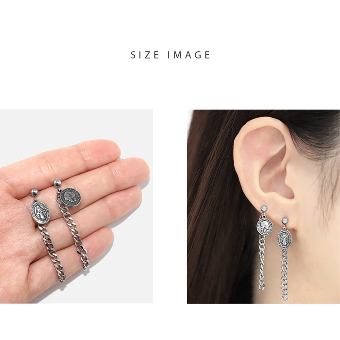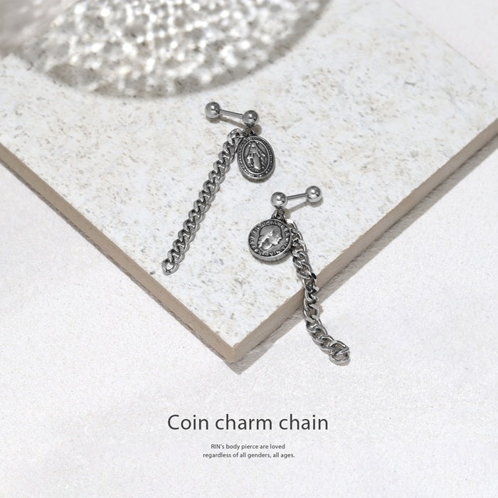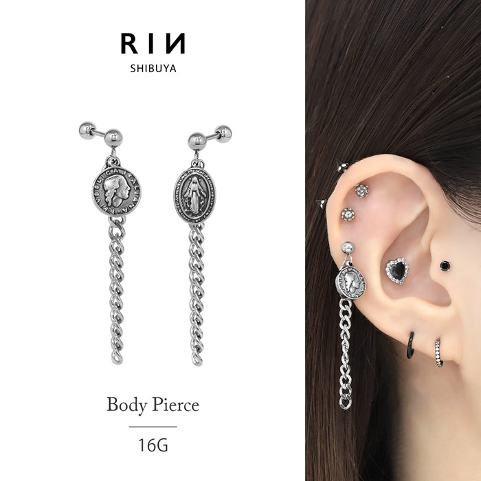 16G メダル コイン ロザリオ チェーン ストレートバーベル 【片耳用】 軟骨チャーム付0200 j612-6