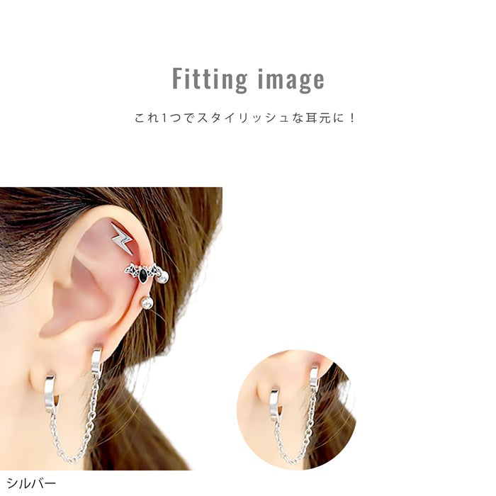 【楽天SOY4年連続受賞】ピアス 二連 ステンレスピアス チェーン リング シルバー ゴールド ブラック 金属アレルギー対応 サージカルステンレス つけっぱなし ワンタッチ メンズ レディース 片耳用 ボディーピアス