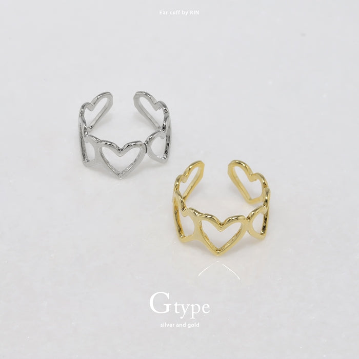 j852-3 イヤーカフ イヤーカフス イヤカフ カフ 変形 ツイスト ハート シルバー ゴールド イヤリング 真鍮 片耳用