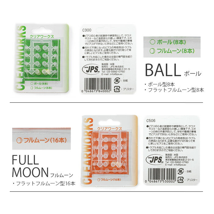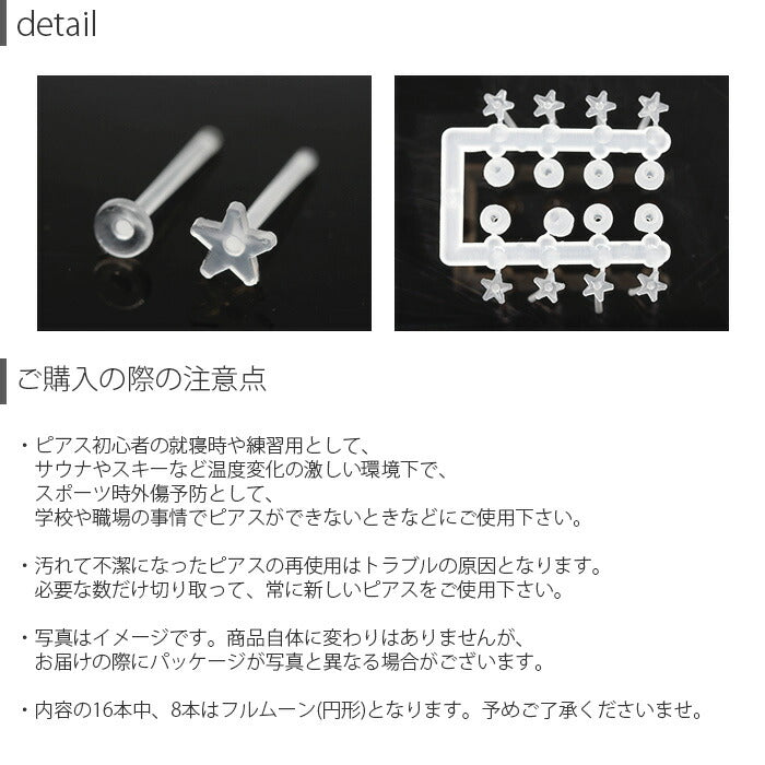 【楽天SOY5年連続受賞】透明ピアス ボディピアス ボール ハート スタ ムーン 18G 16本 セット 樹脂ピアス 金属アレルギー対応 つけっぱなし 目立たない シークレットピアス メンズ レディース クリアワークス 片耳用