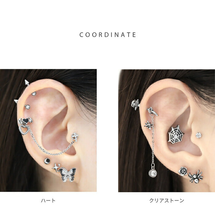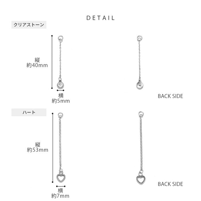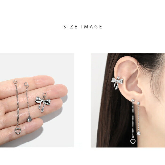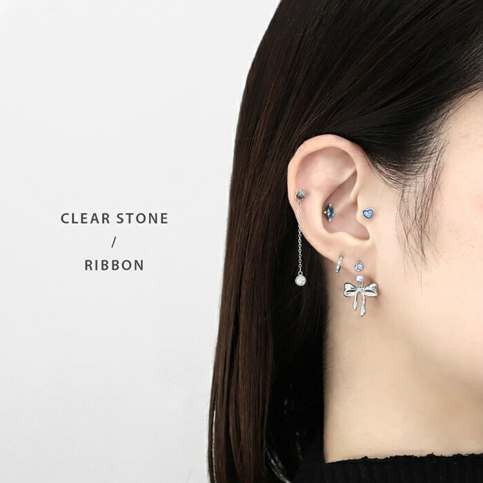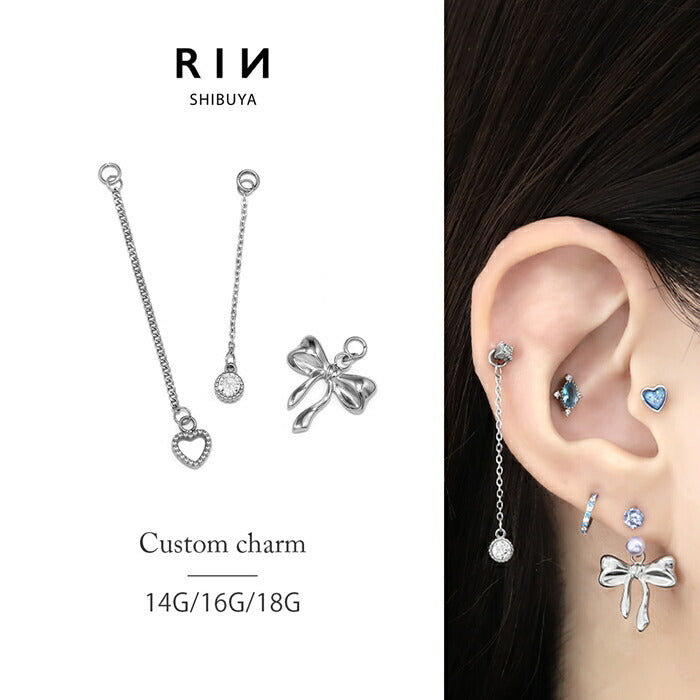 k64-005 ボディピアス チャーム ピアス パーツ チェーン カスタマイズ キュービックジルコニア ゆらゆら リボン ハート キラキラ サークル ストーン シルバー 人気 トレンド カジュアル デイリー 日常使い 遊び お出かけ ギフト 片耳用