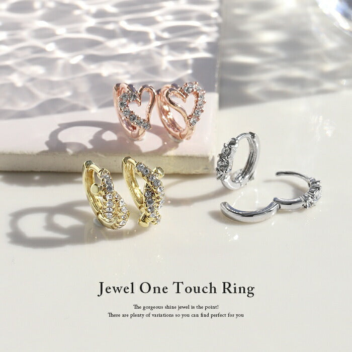 mm-0107 ピアス フープピアス リングピアス レディース おしゃれ かわいい ハート 落ちない 小ぶり シンプル ストーン 小さい ハート リング ワンタッチ ジュエル ビジュー 真鍮 メタル キャッチレス リング 上品 華奢