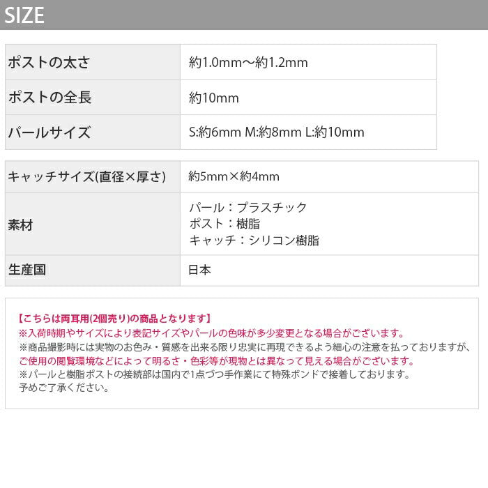 【両耳用・2個売り】 ピアス パール 樹脂ポスト アクセサリーカテ0007 mmj-002