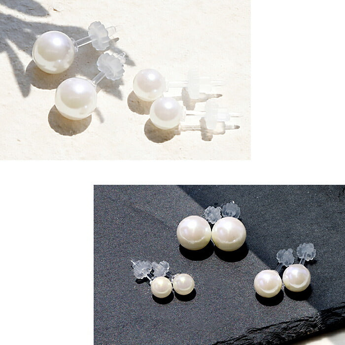 【両耳用・2個売り】 ピアス パール 金属アレルギー パールピアス つけっぱなし レディース セカンドピアス シリコン キャッチ 軟骨 樹脂 真珠 大人 上品 大ぶり エレガント 華奢 シンプル きれいめ シリコン樹脂 日本製