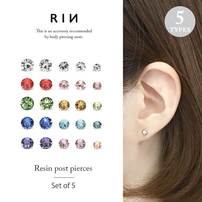 ピアス 5個セット 金属アレルギー つけっぱなし 軟骨 レディース セカンドピアス クリアピンク グリーン ブルー パープル シリコン キャッチ ガラス ストーン 樹脂 大人 上品 大ぶり エレガント 華奢 シンプル きれいめ 日本製 セット