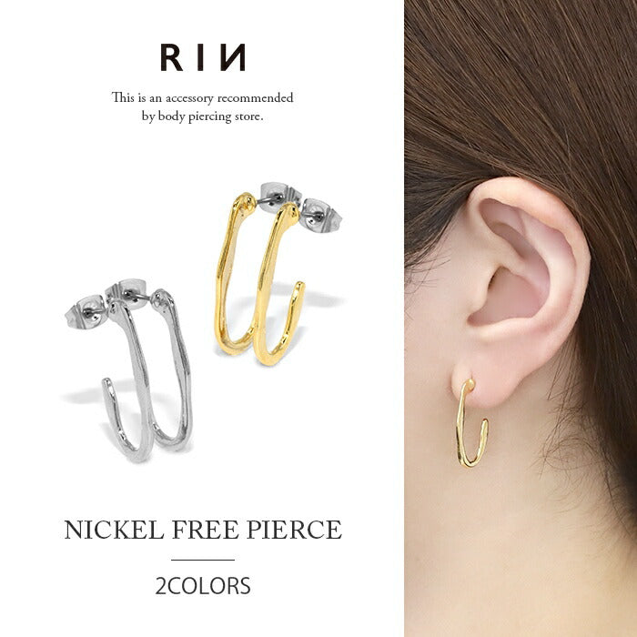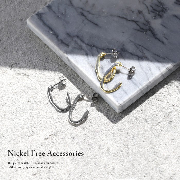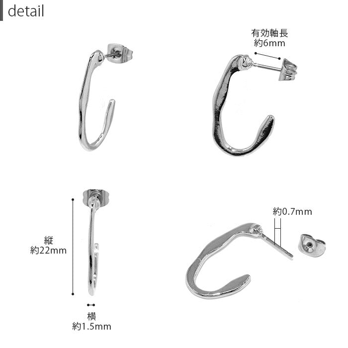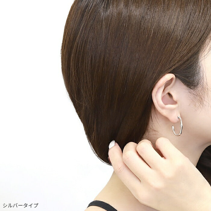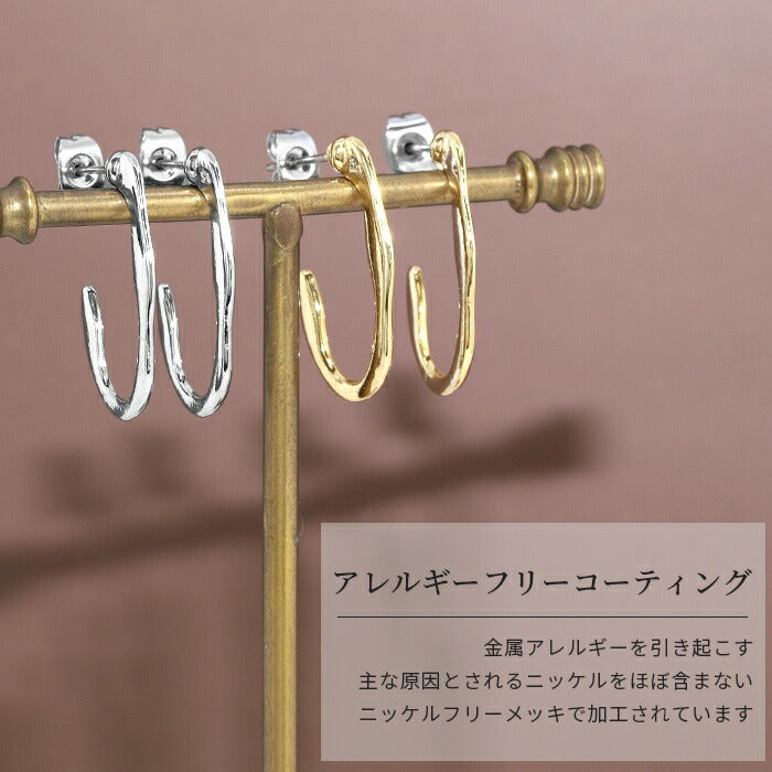 mmj-007 ピアス フープピアス 金属アレルギー ニッケルフリー チタンポスト 低アレルギー レディース 変形 楕円 シンプル シルバー ゴールド スタッドピアス おしゃれ かわいい 上品 きれいめ 耳たぶ 【両耳用・2個売り】