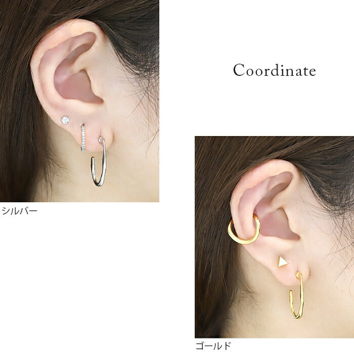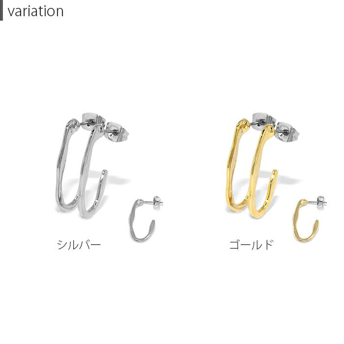 【両耳用・2個売り】フープピアス 変形 楕円 シンプル シルバー ゴールド スタッド アクセサリーカテ0035 mmj-007