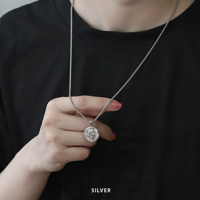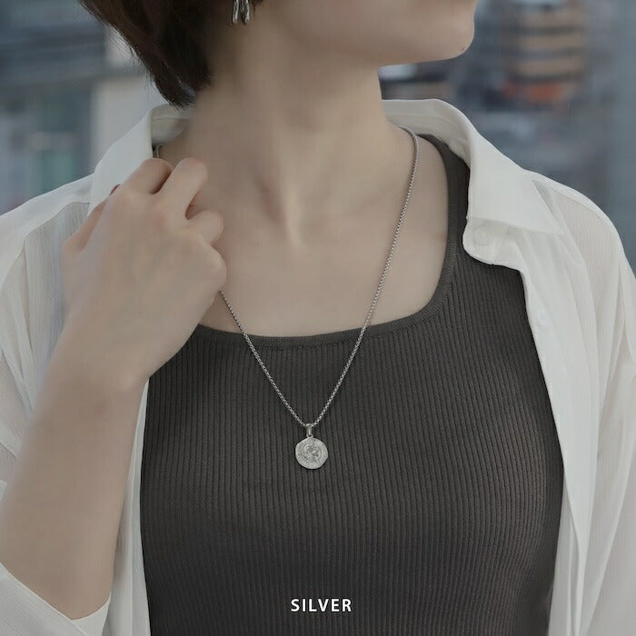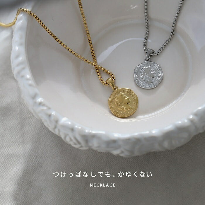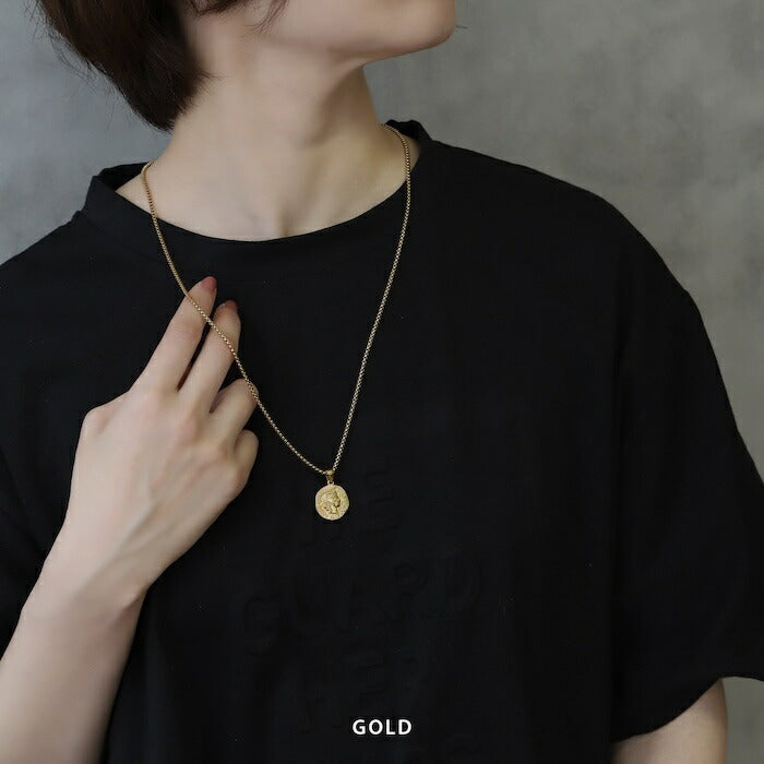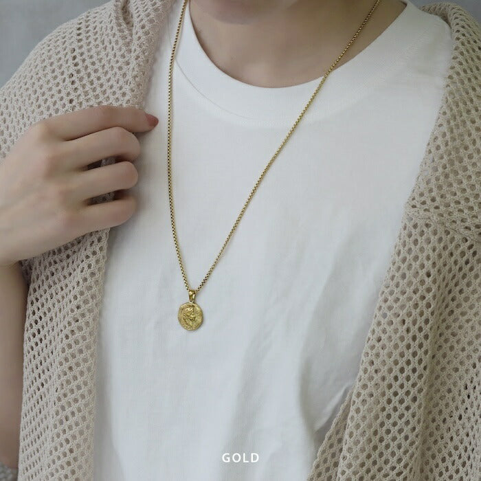 ネックレス サージカルステンレス ベネチアンチェーン オールドコイン ペンダント ロング ネックレス0107 nec-103