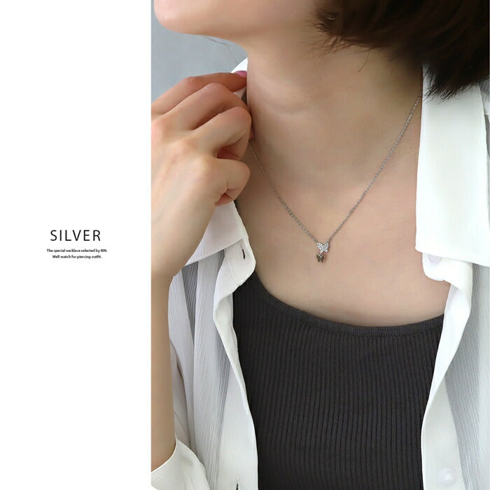 ネックレス 蝶々 バタフライ 18K ロジウム コーティング ジュエリー ネックレス0113 nec-109