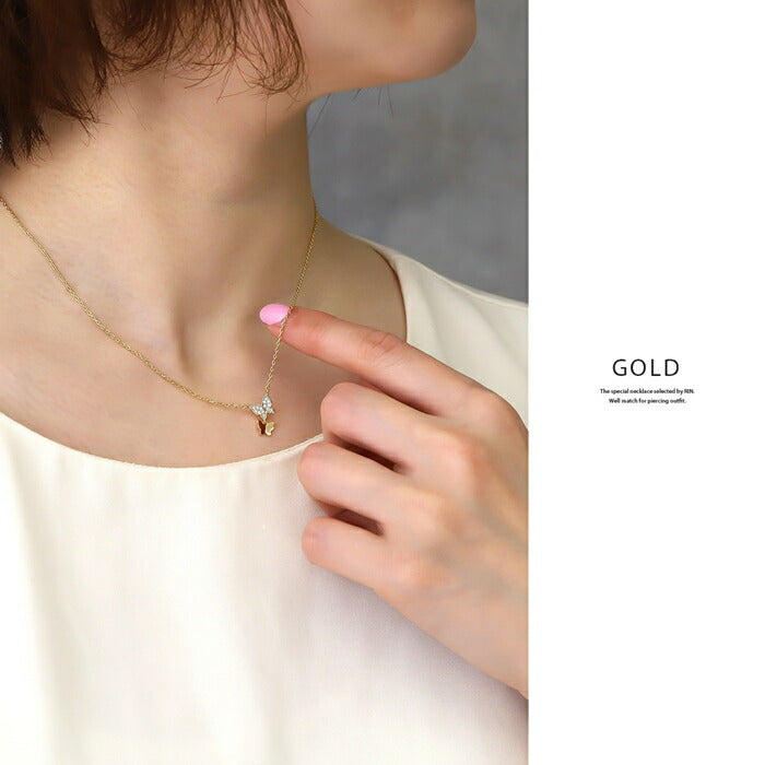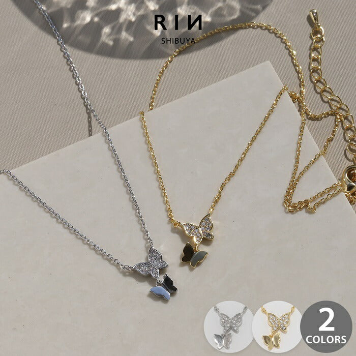 nec-109 ネックレス チェーン チェーンネックレス レディース アズキチェーン 金属アレルギー 蝶々 バタフライ ペンダント シルバー ゴールド 18k 39.5cm シンプル カニカン アクセサリー 普段使い キュービックジルコニア アジャスター アジャスター付き 凛