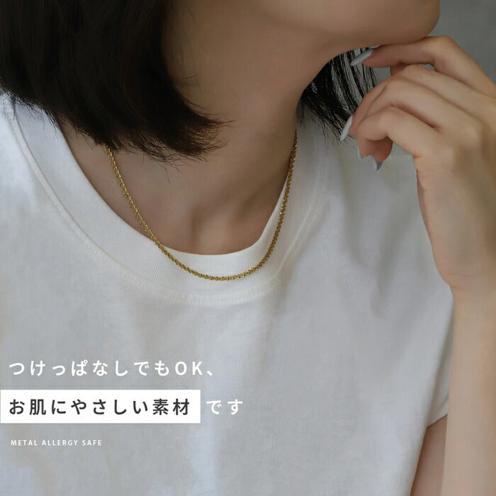 nec-126 ネックレス チェーンネックレス アジャスター サージカルステンレス クリスクロスチェーン プリンセス 金属アレルギー 金属アレルギー対応 つけっぱなし 大人 レディース シンプル かわいい シルバー ゴールド 41cm IPコーティング 普段使い 凛
